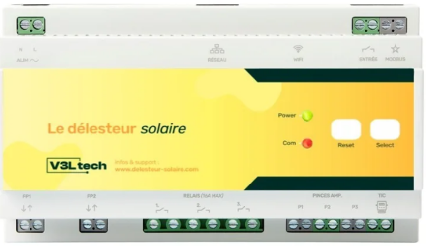 Optimisez votre autoconsommation solaire en pilotant automatiquement vos appareils (chauffage, chauffe-eau, équipements électriques). Compatible Linky, monophasé et triphasé, il dispose de 3 relais 16A, du Wi-Fi/Ethernet et d’une interface web simple. Installation sur rail DIN, faible consommation, fabriqué en France.