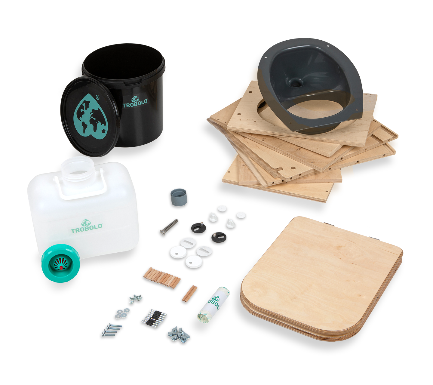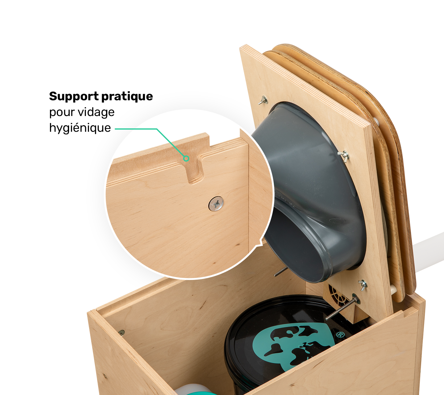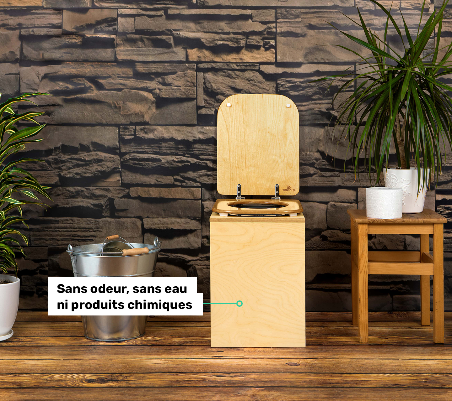 Kit de toilette sèche en bois ingénieux et facile à monter. 100 % sans odeurs, sans eau ni produits chimiques.