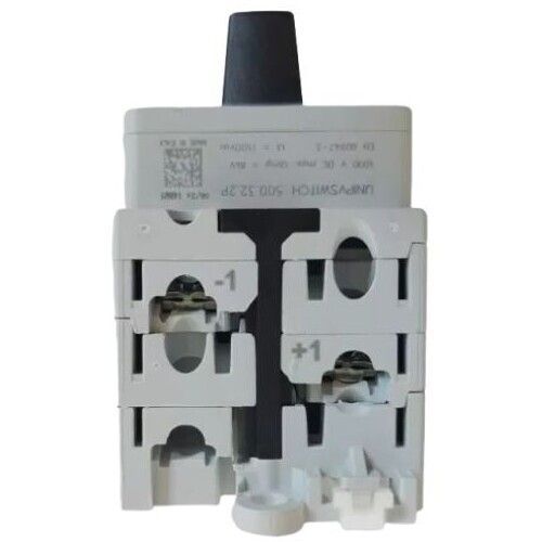 UNIPVSWITCH 500.50.2P est un interrupteur-sectionneur bipolaire idéale pour le fonctionnement en toute sécurité des installations solaires jusqu'à 500V DC.